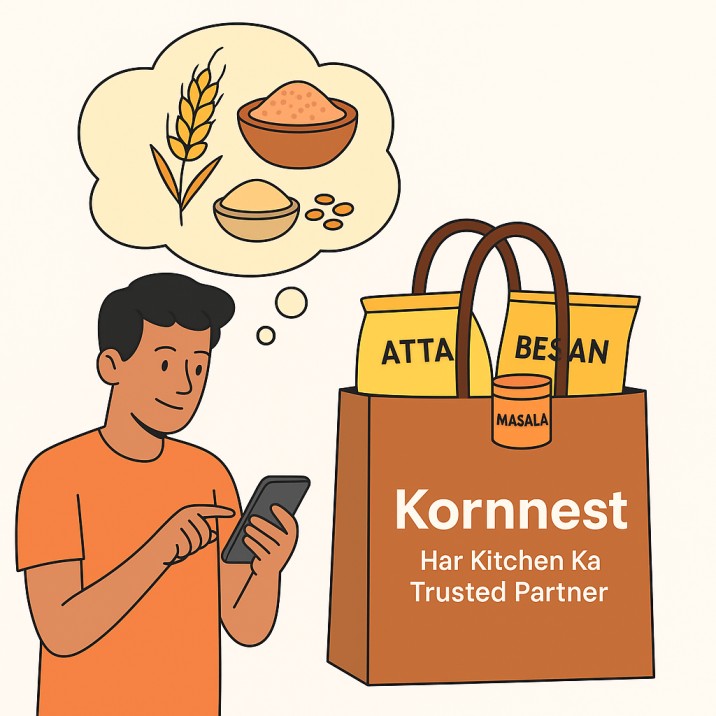 At Kornnest, we bring you hygienic grains, flour, pulses and spices directly from trusted sources, ensuring quality in every kitchen.